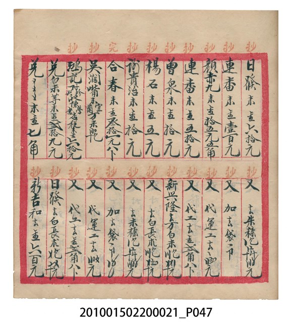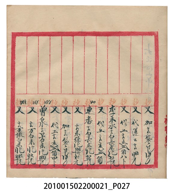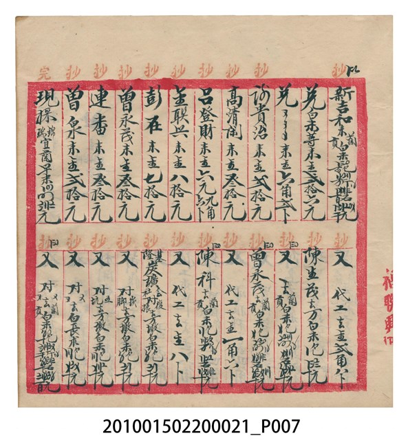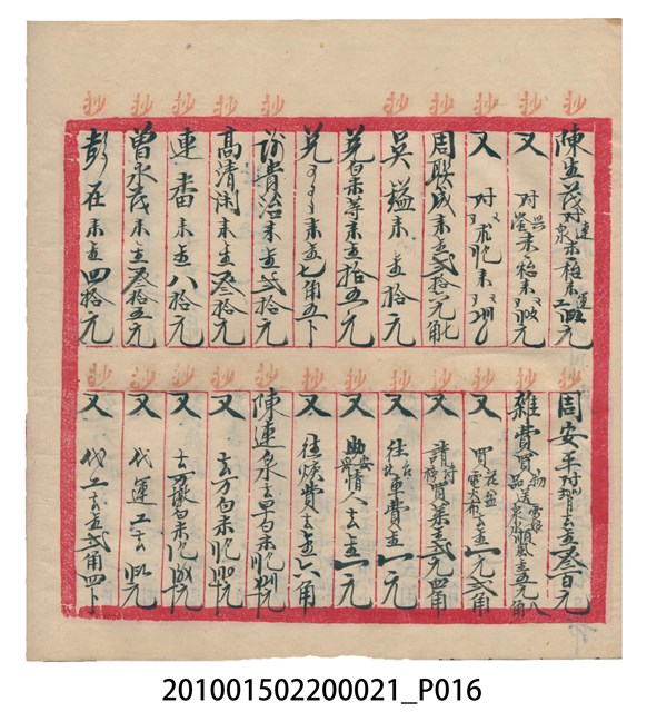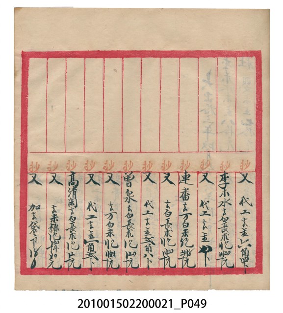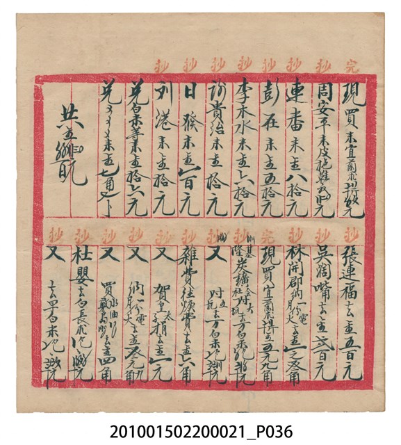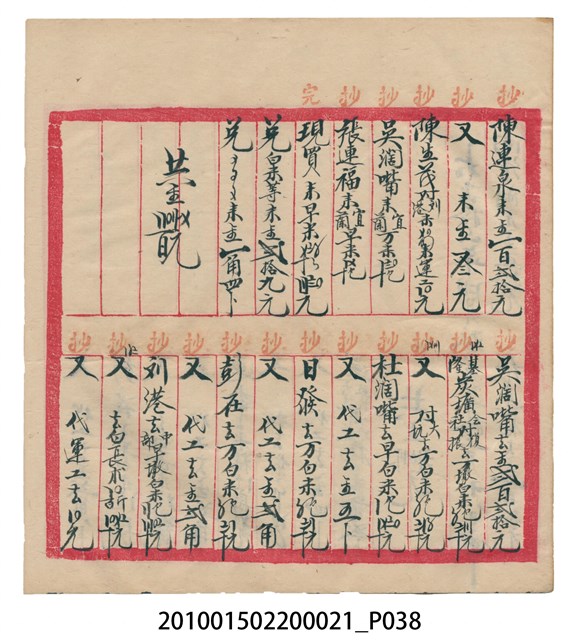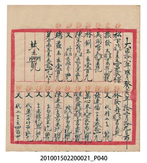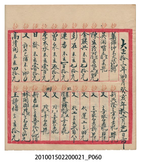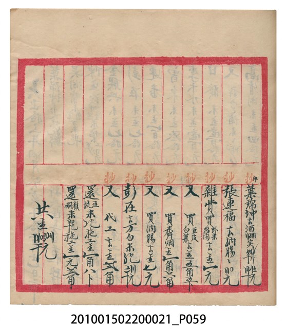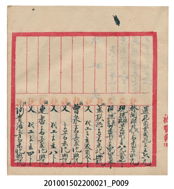 本物件為瑞興大正拾弍年癸亥苐叁部日清,該書以棉線裝訂,封面、封底藍色,書背四處破損,頂邊題有瑞興大正拾弍年癸亥苐叁部日清字樣,內容涵蓋首行瑞興號大正拾三年歲次癸亥年仲冬立苐叁部日清 承苐弍部日清尾存 大正13年●月癸亥年拾一月廿七日市上欄收入陳生茂、陳科、曾永茂等費用;下欄支出陳連泉等費用。大正13年●月癸亥年拾一月廿八日市上欄收入兑白米等費用;下欄支出基隆炭鑛會社、拖工、雜費等費用。大正13年●月癸亥年拾二月卅日市上欄收入金聯興、連番、曾泉等費用;下欄支出現買、吳濶嘴、周安平、拖工、雜費等費用。