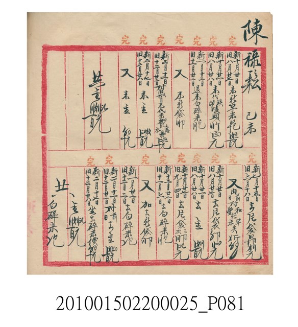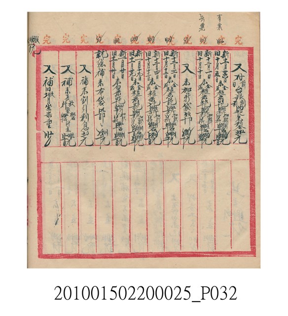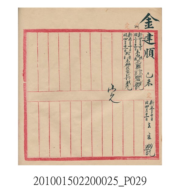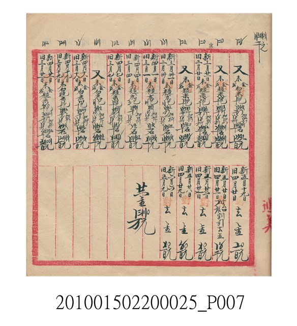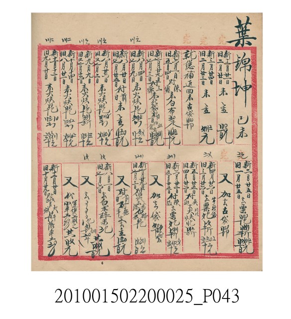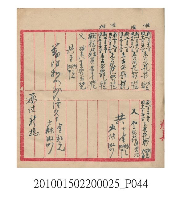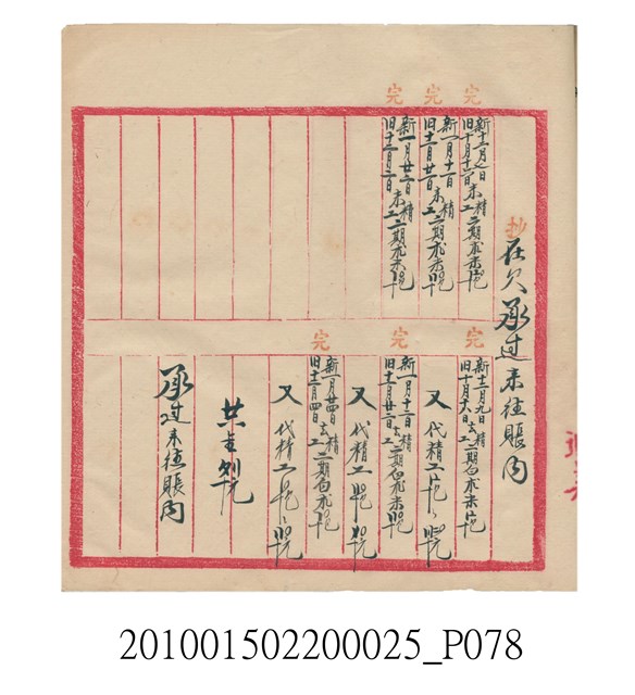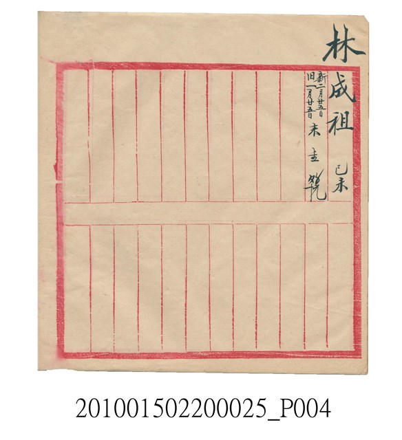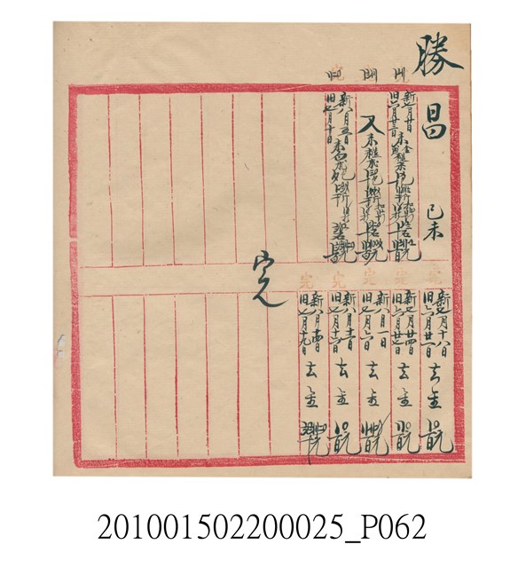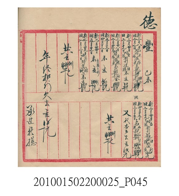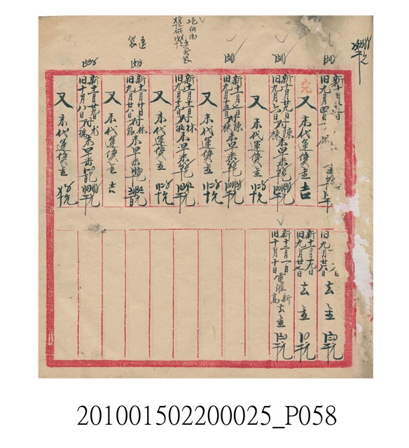 本物件為瑞興大正八年己未行戶交關總簿,該書以棉線裝訂,封面、封底藍色,頂邊題有瑞興大正八年己未行戶交關總簿字樣,內容涵蓋張連福己未 承戊午年●●●結在金並交易收支費用。[夾紙] 本物件為大正8年12月28日瑞興 殿納請求書估算費用,臺灣倉庫株式會社開立收費證明。[夾紙] 本物件為蘇州碼並字跡難辨。[夾紙] 本物件為大正8年11月21日對彰銀信滙及其他借貸費用之清償與積欠紀錄。[夾紙] 本物件為大正8年12月2日瑞興商行對新銀電當座、彰銀信滙等費用紀錄。[夾紙] 本物件為11月15日彰化周秋淋等致瑞興寶號請求書運送麻袋、米數量的交易紀錄。 原簿,其他支出費用。