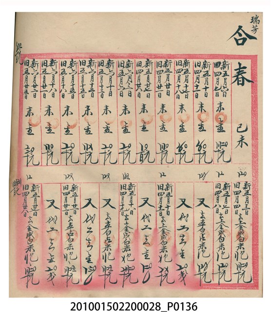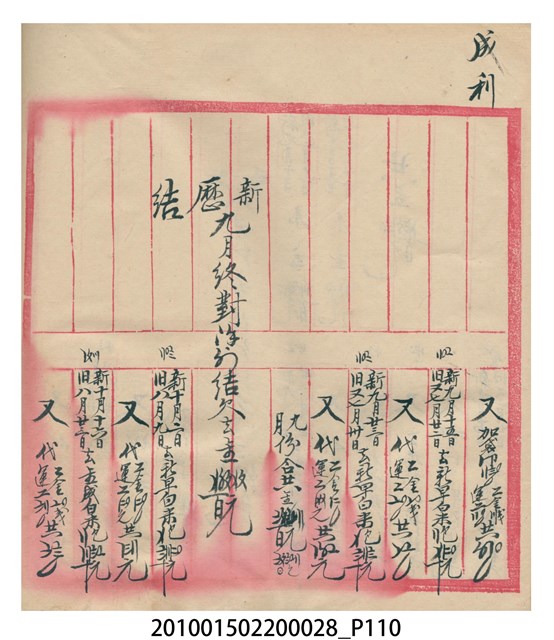 大正12年錦瑞號結冊目錄