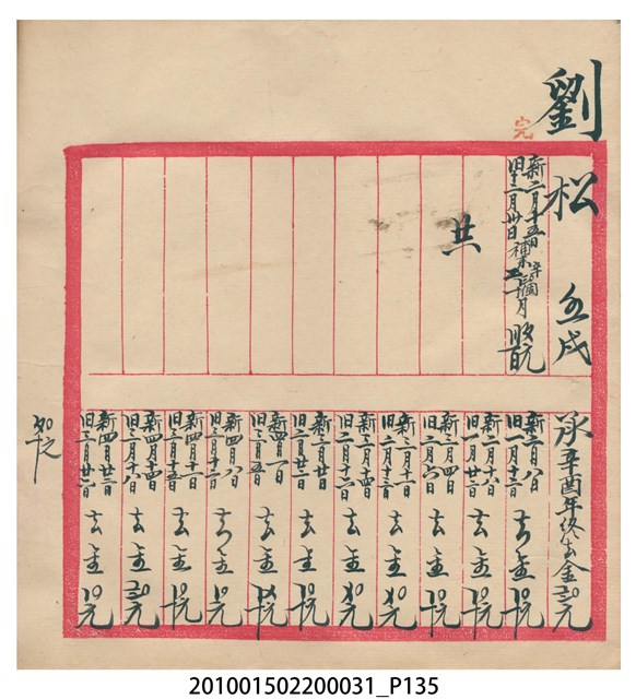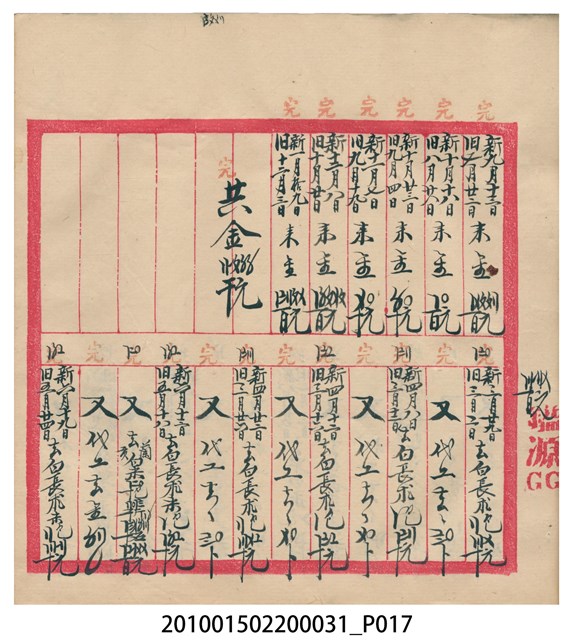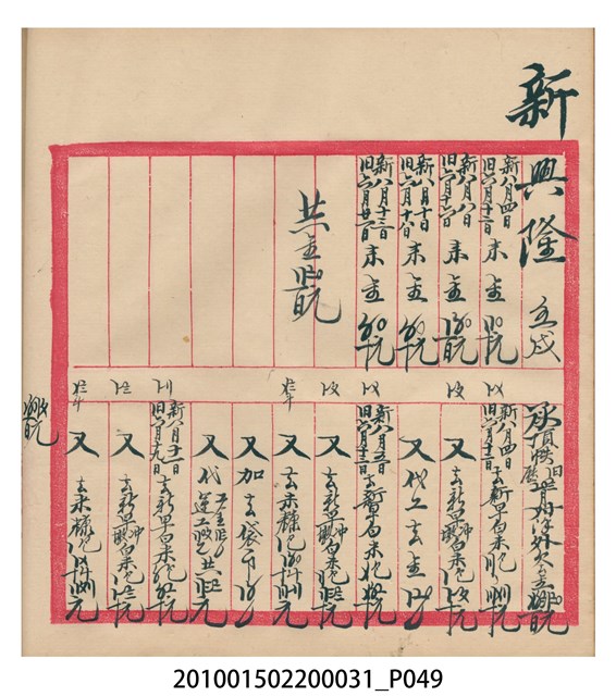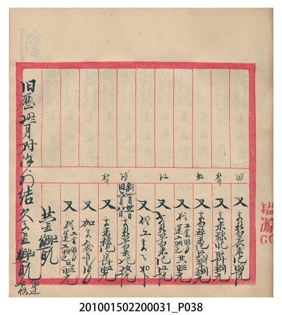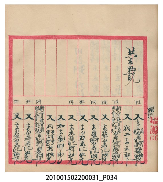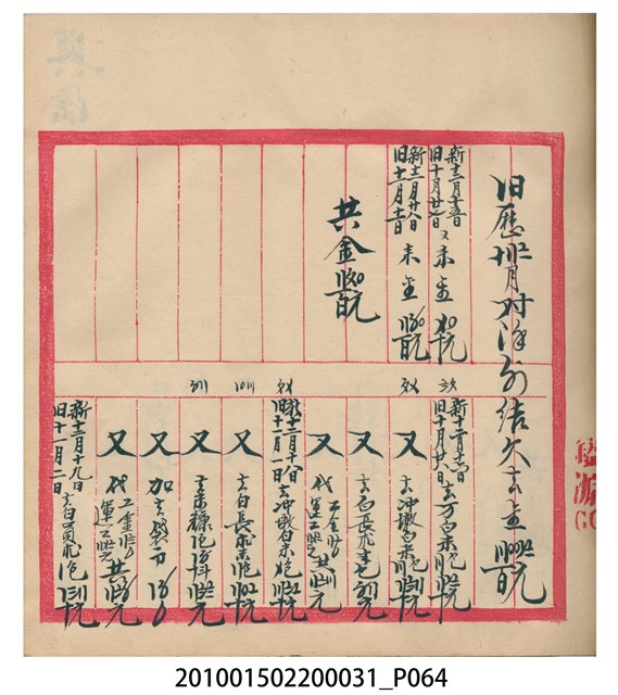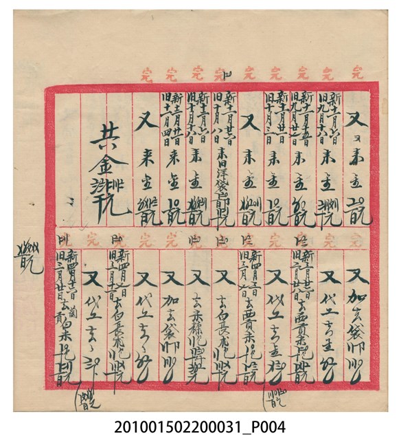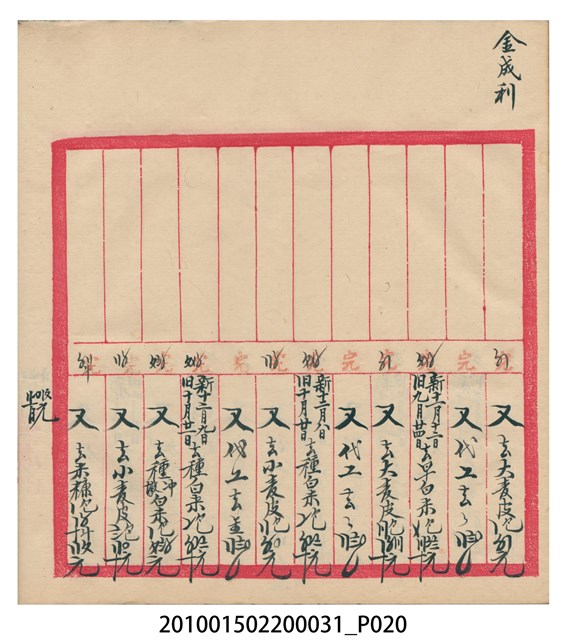 大正12年錦瑞號結冊目錄