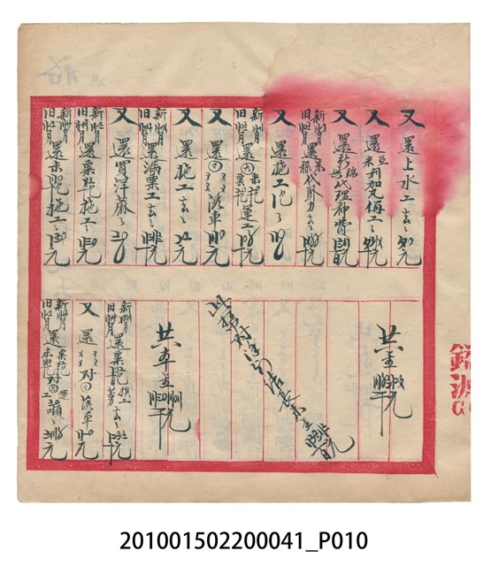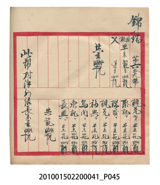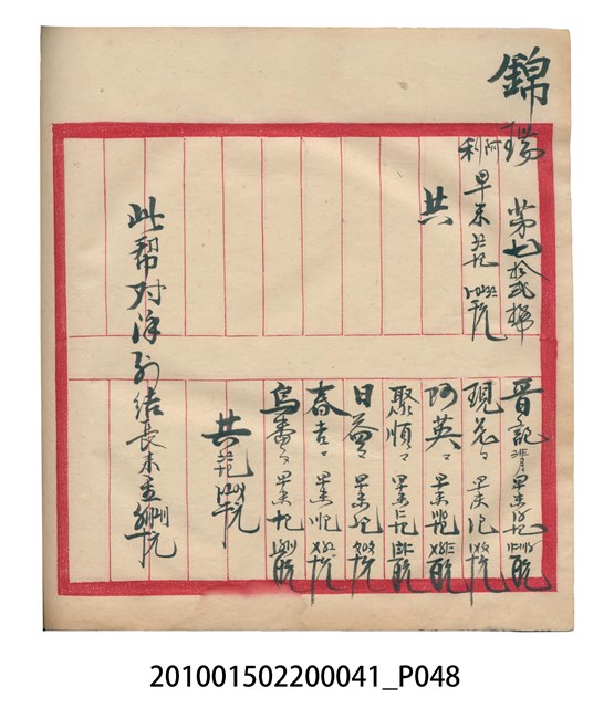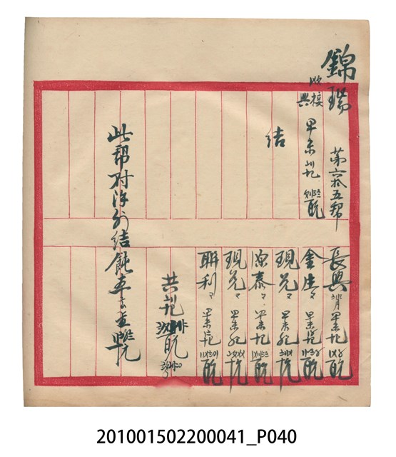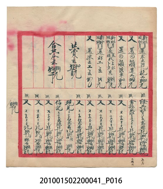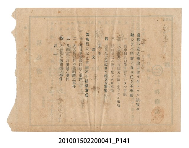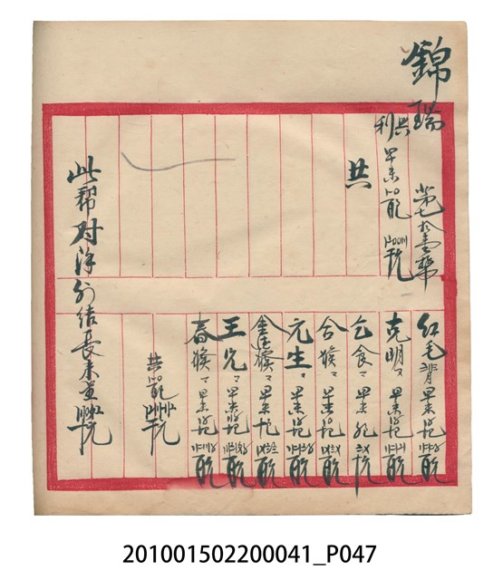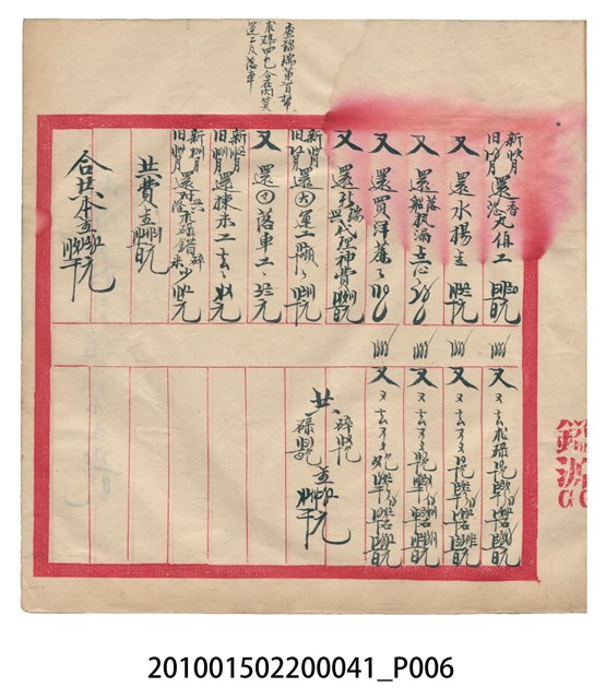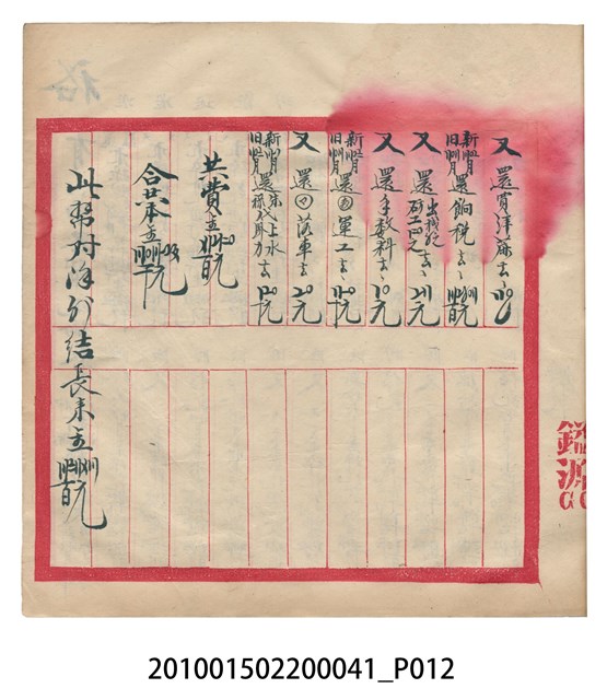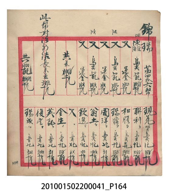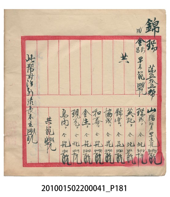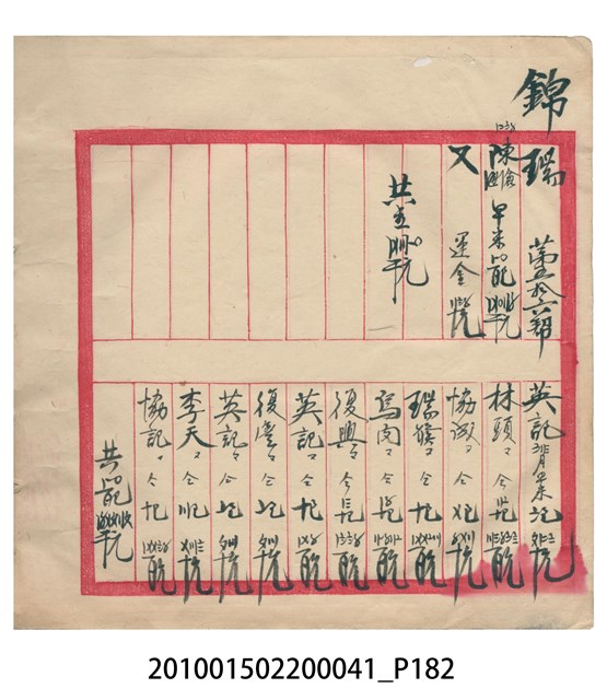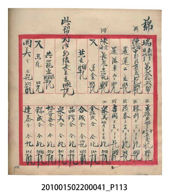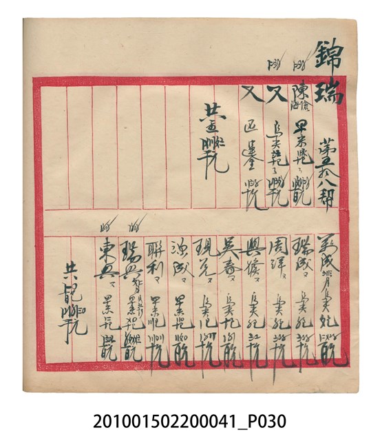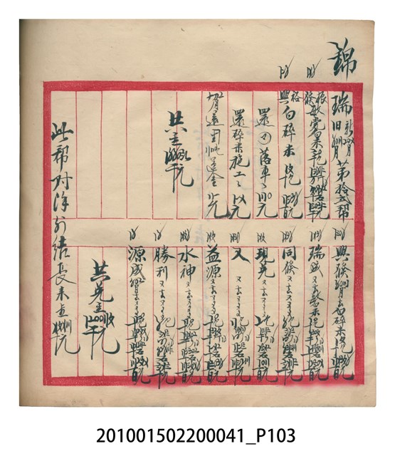 本物件為錦瑞號大正拾叁年甲子立號頭簿,該書以棉線裝訂,封面、封底藍色,書背、封底有破損,頂邊題有錦瑞號大正拾叁年甲子立號頭簿字樣,內容涵蓋錦瑞號與裕有、錦瑒商品交易收支紀錄。[夾紙]本物件為隨手筆記磅工、出棧、手數料、稅金費用。[夾紙]本物件為大正13年3月6日高水生納關稅領收證書。大正13年3月6日高水生納關稅,由臺灣總督府稅關收入官吏臺灣總督府稅關屬田ノ上家光開立領收證書。該筆金額納為大正12年度臺灣總督府特別會計歲入。[夾紙] 本物件為大正13年3月11日托運者裕有、瑞興號運米船隻亞米利加丸、大華丸費用之估算書,由大阪商船株式會社專屬朱祿海陸運送部 艀船部開立計算價格。[夾紙] 本物件為大正13年3月11日瑞興號運米船隻亞米利加丸、大華丸稅關上水苦力、上家倉庫上水苦力費用之估算書,由大阪商船株式會社專屬朱祿海陸運送部 艀船部開立計算價格。[夾紙]本物件為大正13年3月9日大森運送店開立予瑞興商行之估算書,計算海陸運送費用。