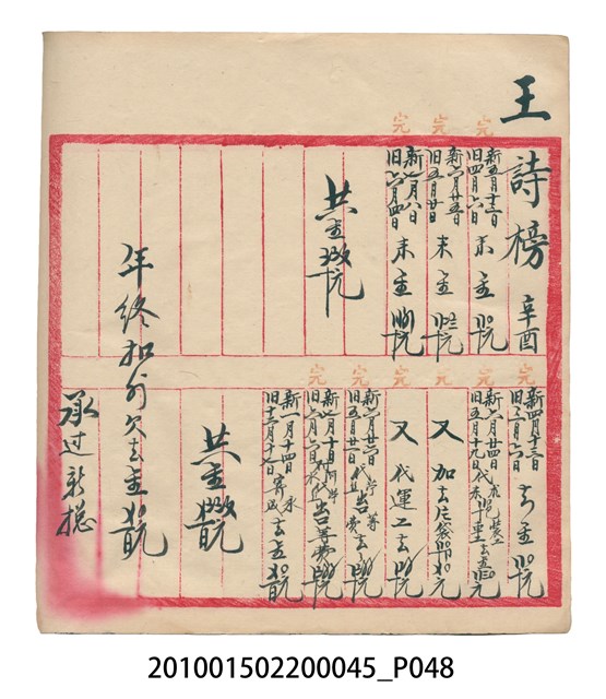 臺北廳芝蘭三堡業主王港及王詩摺地租冊