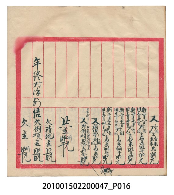 瑞興大正八年己未吉立焿藔九份本街各埠交關總簿