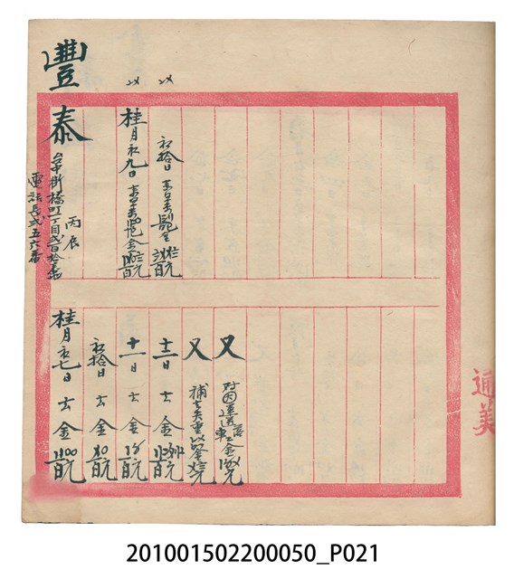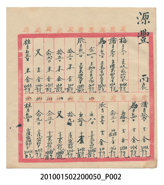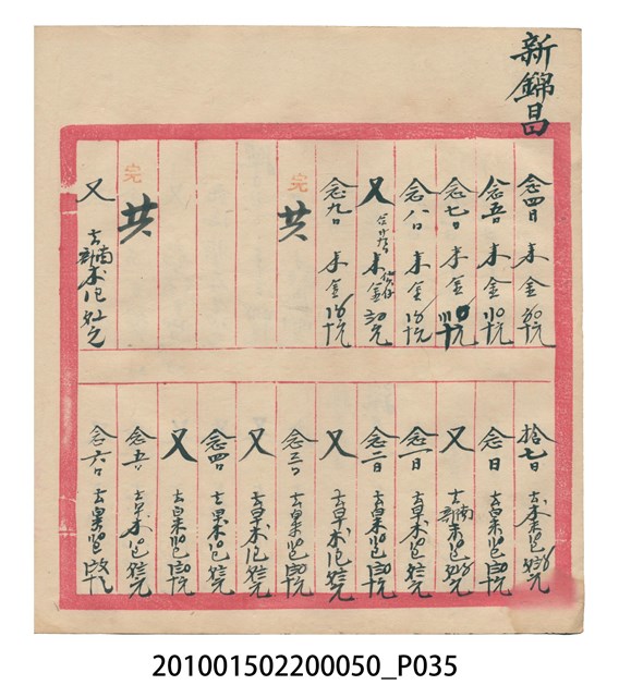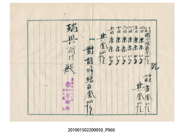 大正12年錦瑞號結冊目錄
