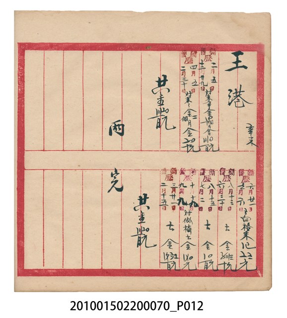 臺北廳芝蘭三堡業主王港及王詩摺地租冊