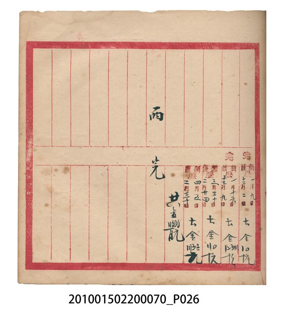 大正12年錦瑞號結冊目錄