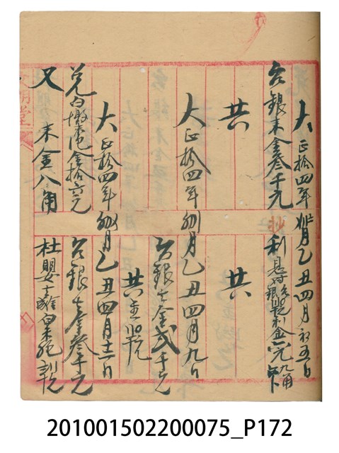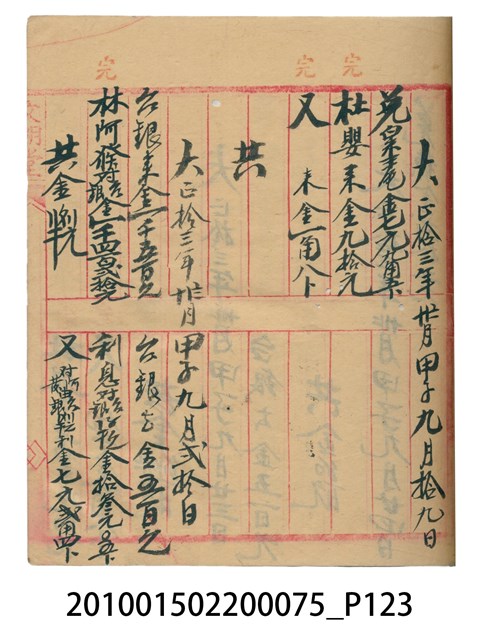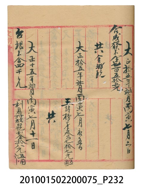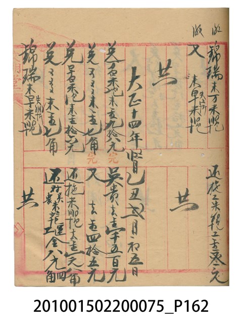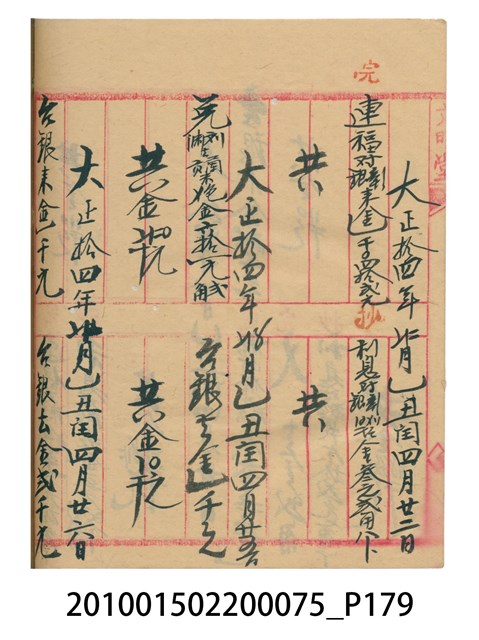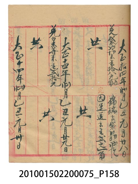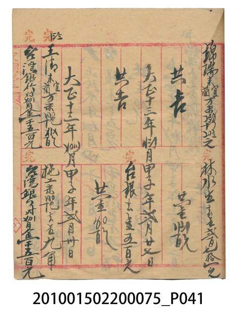 瑞興大正八年己未吉立焿藔九份本街各埠交關總簿