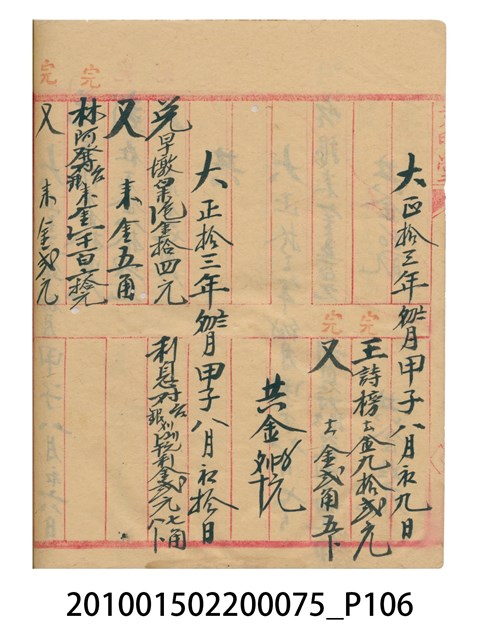 帳冊內頁上有「大正13年」、「大正14年」字樣