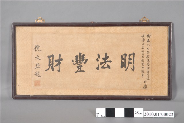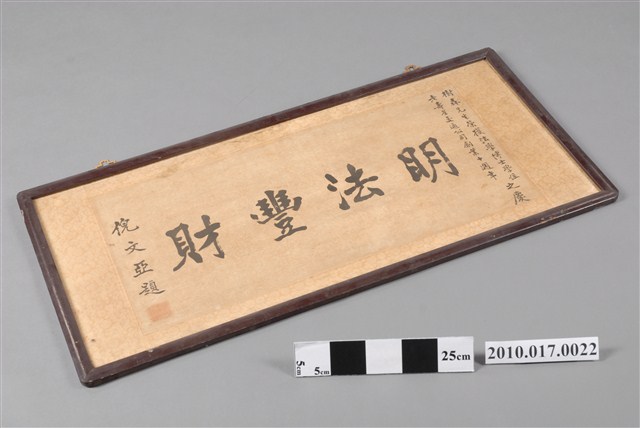 2010.017.0022 倪文亞題「明法豐法」書法匾額