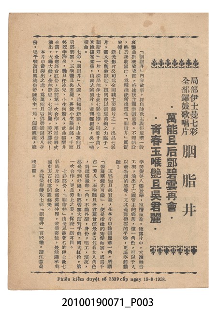 2010.019.0071 《胭脂井》等片宣傳小冊