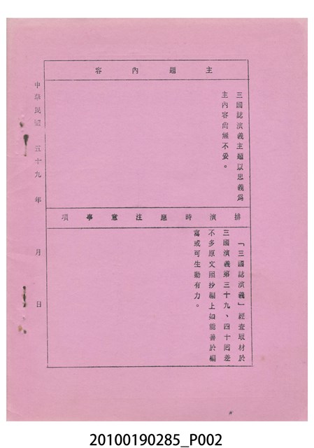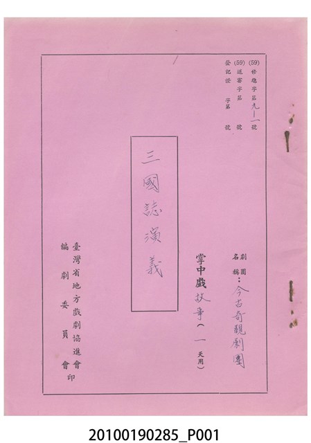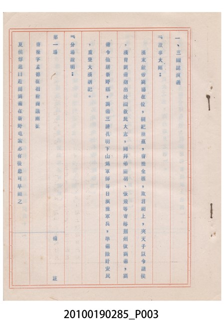 2010.019.0285 民國59年送審劇本《三國誌演義》