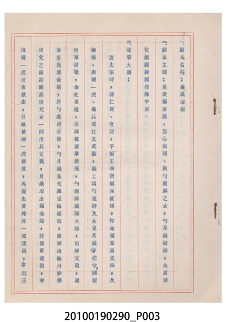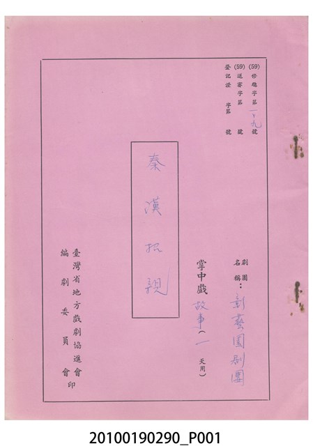 2010.019.0290 民國59年送審劇本《秦漢招親》