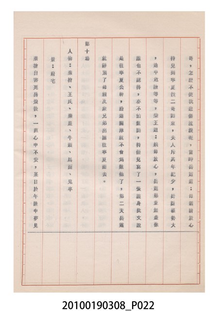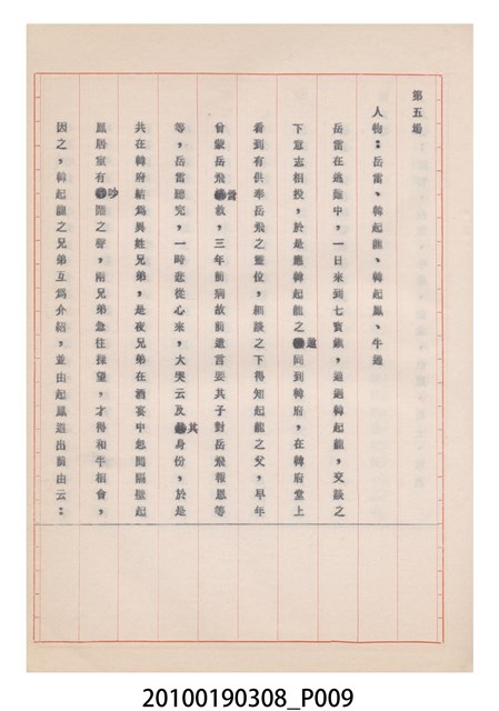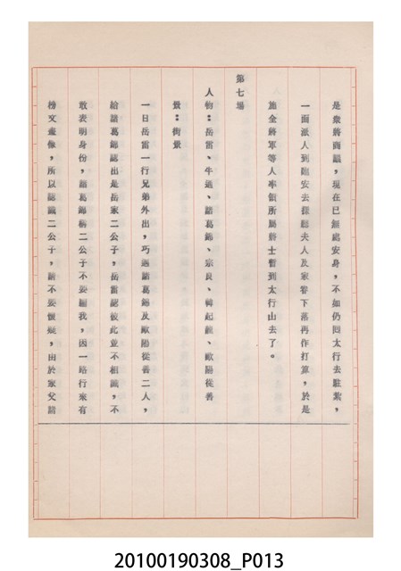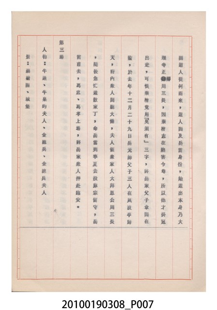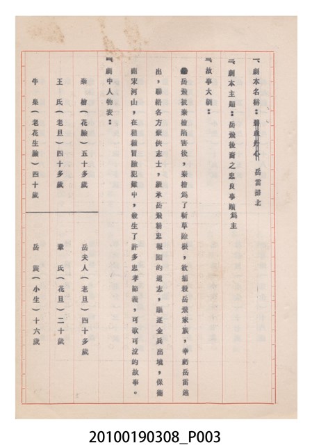 1.本件送審劇本《岳雷掃北》是乾坤閣掌中劇團送審的「(59)修總字第88號」劇本,內容是描寫岳飛後裔岳雷的忠良事蹟。2.民國41年(1952),國民政府高舉反共抗俄的年代,由黨政機關主導成立的臺灣省地方戲劇協進會,一方面為貫徹政府意志,輔導民間劇團演出方向的工作,一方面匯集民間劇團與演藝人員的力量,共謀生存、福利與發展的平臺,實際上具有同業公會的性質與功能。