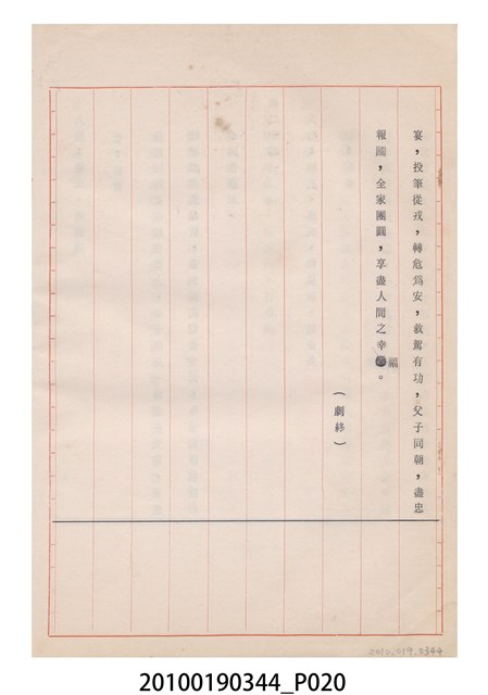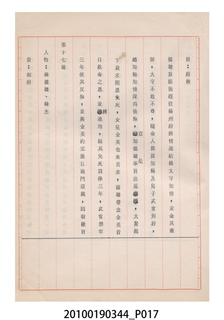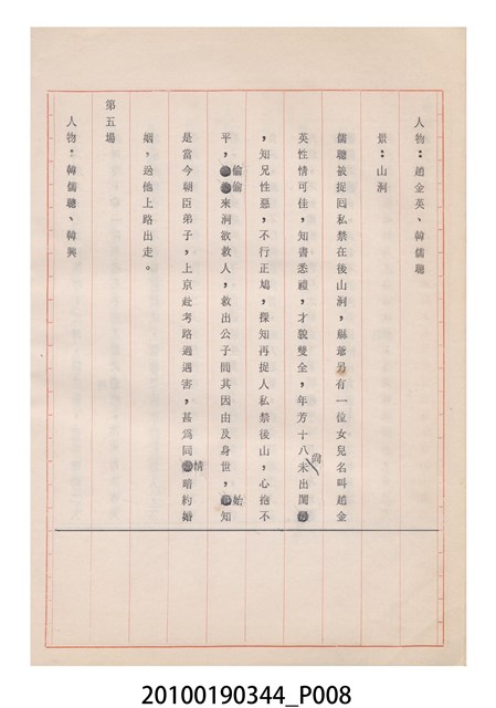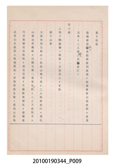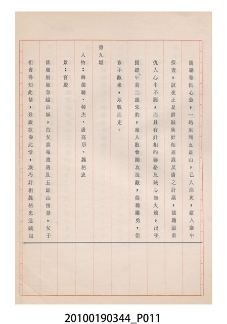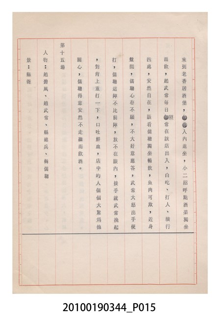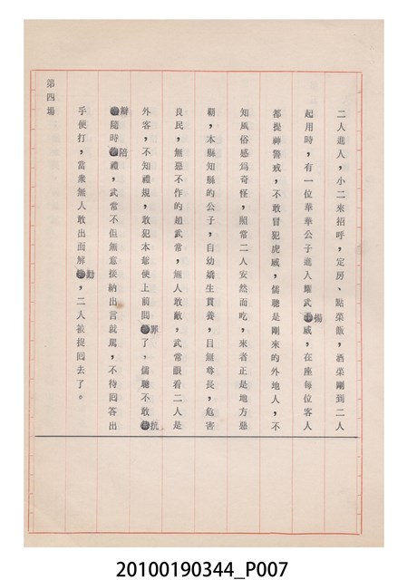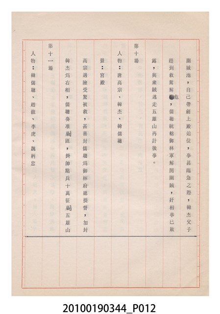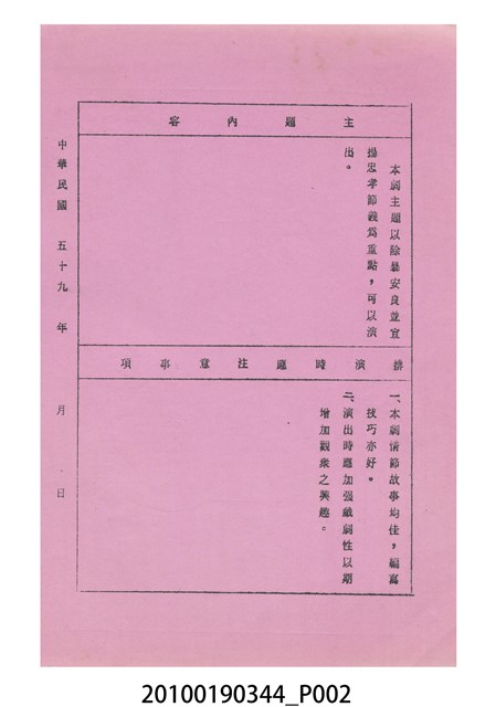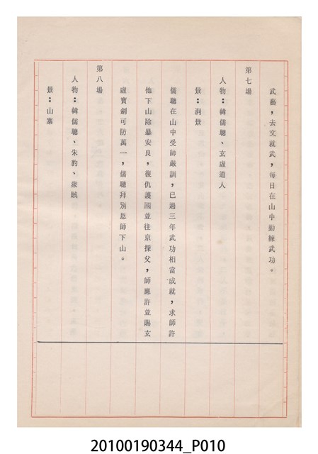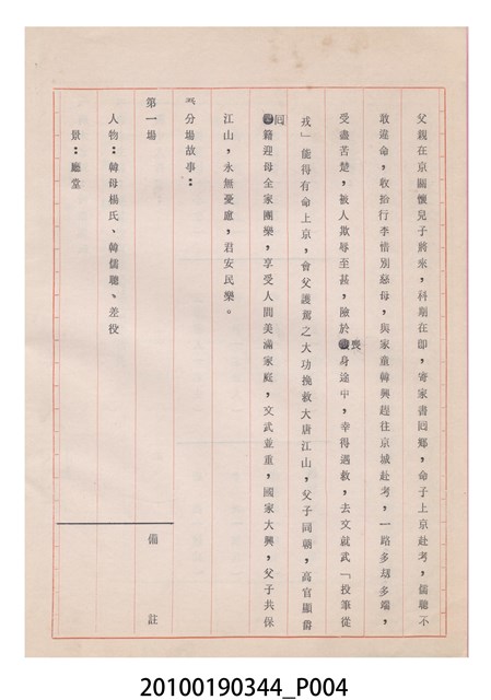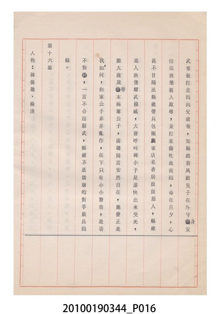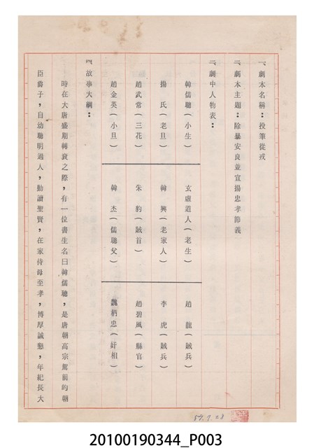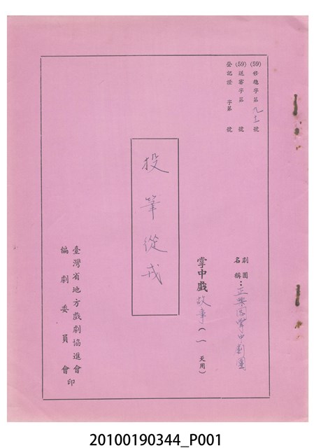 2010.019.0344 正樂閣掌中劇團送審劇本《投筆從戎》