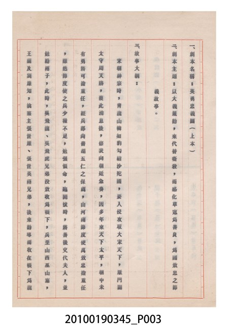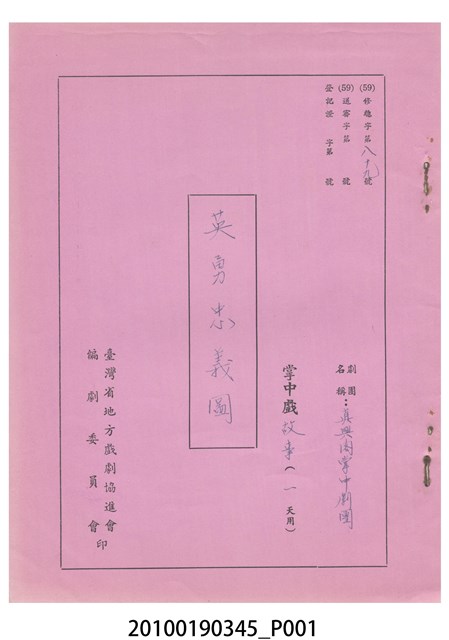 2010.019.0345 真興閣掌中劇團送審劇本《英勇忠義圖》