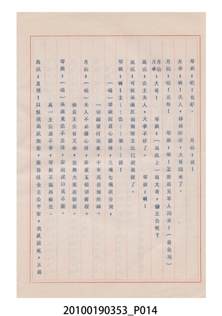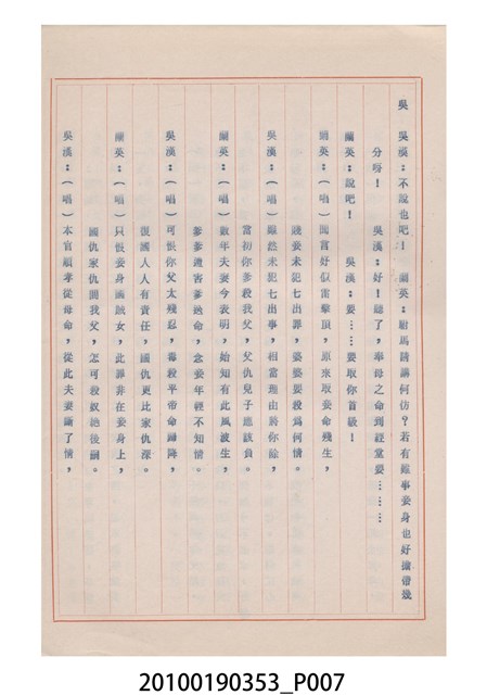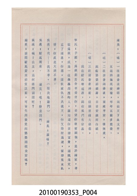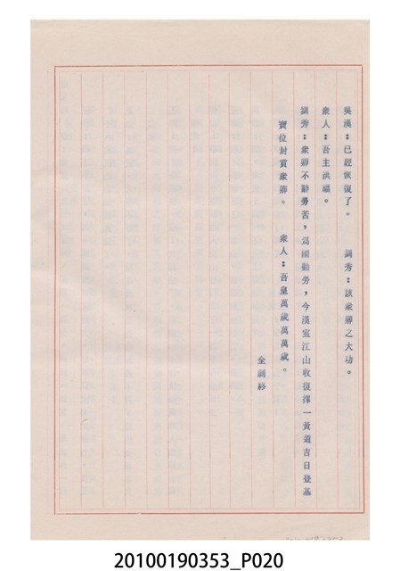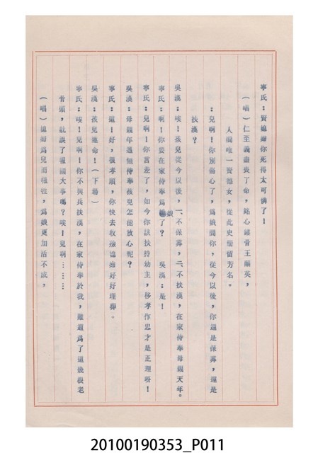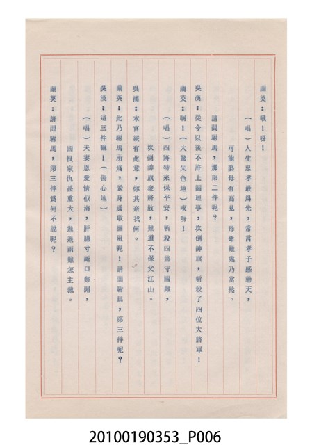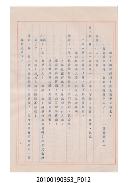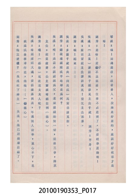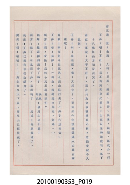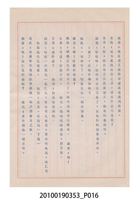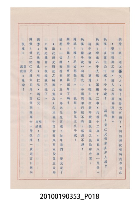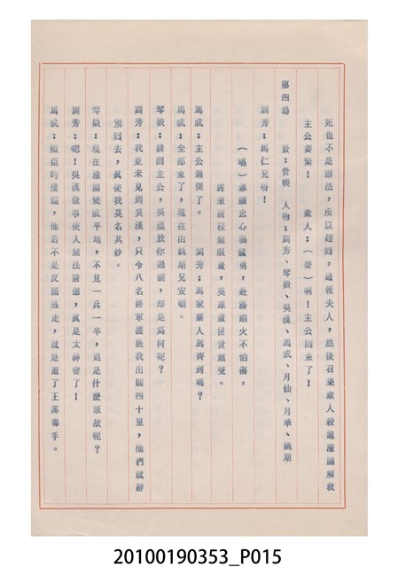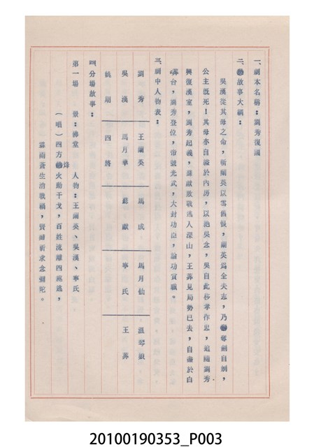 2010.019.0353 明光歌劇團劇本《劉秀復國》第六集