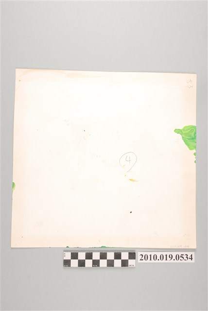 1.本件為「童書原稿散頁53」,此件為單面散頁。根據畫風及人物與登錄號「2010.019.0533」、「2010.019.0535」~「2010.019.0540」、「2010.019.0540」、「2010.019.0542」、「2010.019.0563」、「2010.019.0564」為同系列故事。2.這11張原稿圖像,缺乏關鍵畫面,無法推測故事內容與中國何則童話故事有關。但內容不離洪水、天神、官吏等元素。