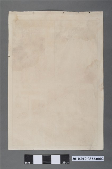 1.國民學校三年級上學期公民與道德課程教學掛圖〈第二週飲食衣服居住行止〉,是國民學校三年級上學期公民與道德課程的教學教材。掛圖左側邊緣印有「生活規範與衛生習慣」,標示本掛圖的科目範圍內容,底端則印「三年上期」、「(第二週)」、「No3」,標示教材適用年級、課程週次,以及頁碼。整體掛圖版面採直式分格設計,由中央以十字墨線分成四格,每格左上角皆有圓形阿拉伯數字標註插圖順序。插圖內容主要描繪學童食、衣、住、行之日常生活中應有的禮儀規範,右上圖飲食單元描繪學童端盤、盛飯的樣子;左上圖描繪三位學童,中間學童站姿端正、服裝衣長恰當,學童右側的學童衣袖過長、左側學童則衣長上捲,與中央學童形成對比;右下圖描繪學童收拾玩具、緊靠椅背,與收拾碗盤鍋具的樣子;左下圖前景描繪兩名站姿和坐姿端正的學童,後景描繪兩名對比的人體黑影,黑影內以白線標記出不端正的姿勢。