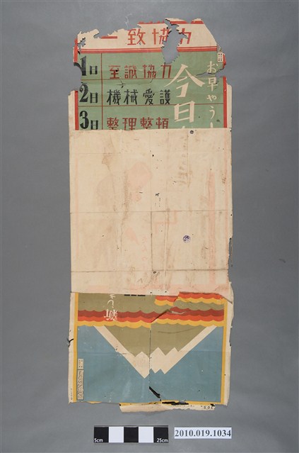 本文物為結核預防海報,為《災害豫防ポスター》第12卷第8號結核豫防號所付之海報,1935年4月15日發行。海報以淡黃色為底圖,上方偏右寫有預防結核病的四要素,包括新鮮的空氣、親近日光、不懈怠地運動、早期治療等。中間為一名身著西裝咳嗽的男人,手指著痰盂,並寫有標語寫著「痰ハ必ず痰壺へ」,意即吐痰一定得吐在痰盂之中。海報左邊寫著結核病與戰爭死亡人數的比較,同時也說明當時一萬人中約有18人患有結核病,全國共有200萬結核病患者之數據。本雜誌由日本災害預防協會出版。