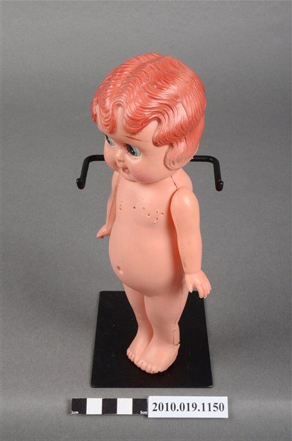 本物件為橘髮女孩玩偶,未著衣服,黑色眼睛與眉毛,嘴巴塗有口紅,呈站姿,雙手擺於大腿兩側。胸前與背後有被尖物破壞的數個洞,底部貼有「MADE IN JAPAN」、「TCTMA INSPECTION PASSED」等字樣等資訊。