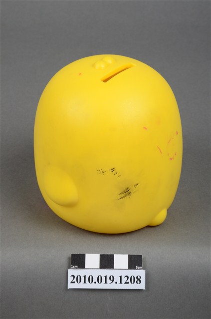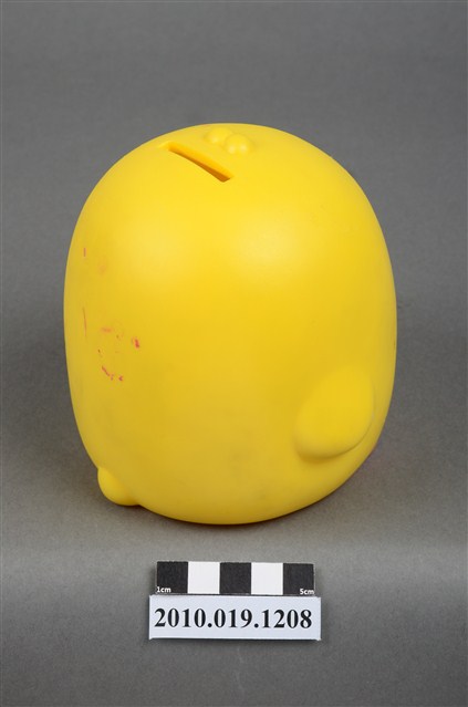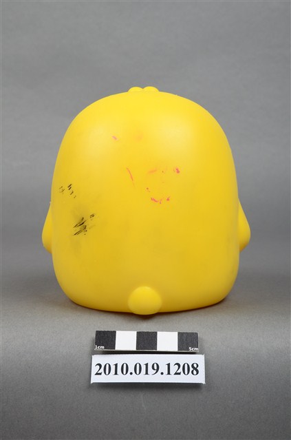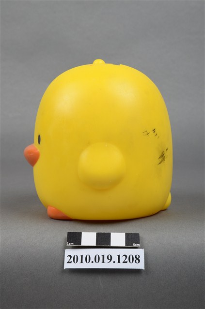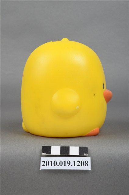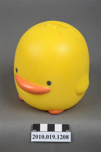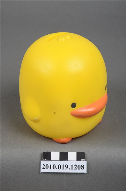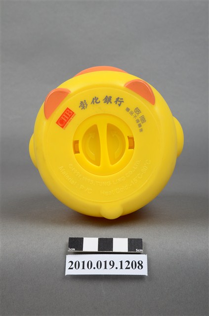 1.本物件為彰化銀行鴨子造型存錢筒。身體為黃色,嘴與足部為橘色。底部有「彰化銀行」商標,以及「敬贈」、「贈品不得轉售」等字樣。
