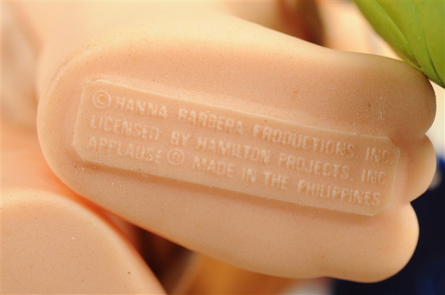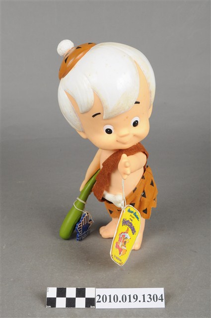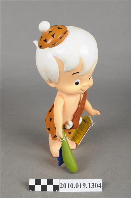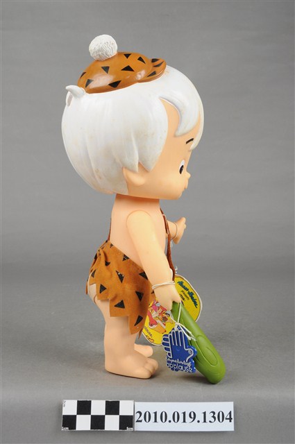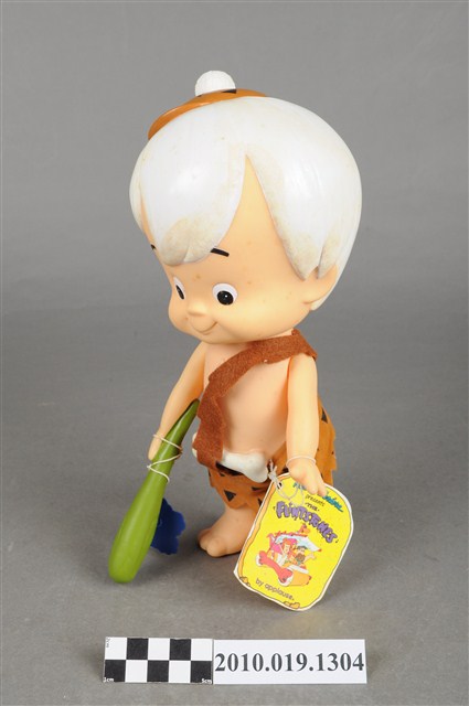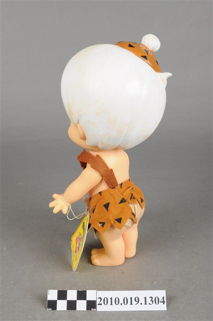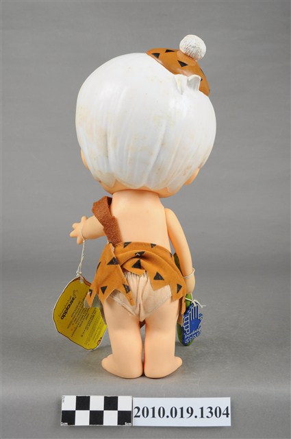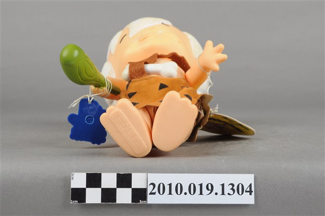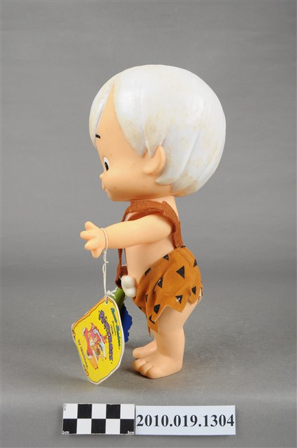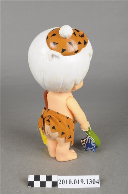 1.本物件為摩登原始人玩偶,塑膠材質,身穿原始人特色服裝,並有骨頭裝飾,頭上也有與服裝相同的裝飾。雙手手腕處掛有吊牌,其中一手持棍棒。底部有「HANNA BARBERA PRODUCTIONS, INC.」、「LICENSED BY HAMILTON PROJECTS, INC.」、「APPLAUSE」、「MADE IN PHILIPPINES」字樣。
