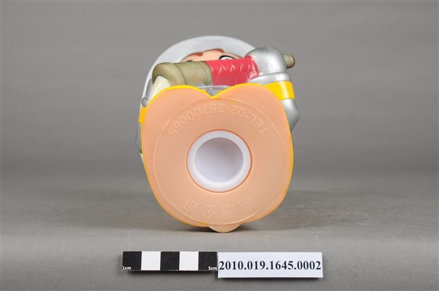 1.本物件為臺南縣消防寶寶造型存錢筒,身穿銀色頭盔、消防衣與靴子的全套消防設備,手拿消防瞄。頭盔上有「台南縣消防局」字樣與消防標誌,右側衣領上有「1999」字樣的消防寶寶存錢筒。