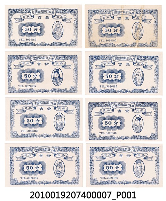 2010.019.2074.0007 三國因遊戲計分券「50分」