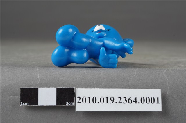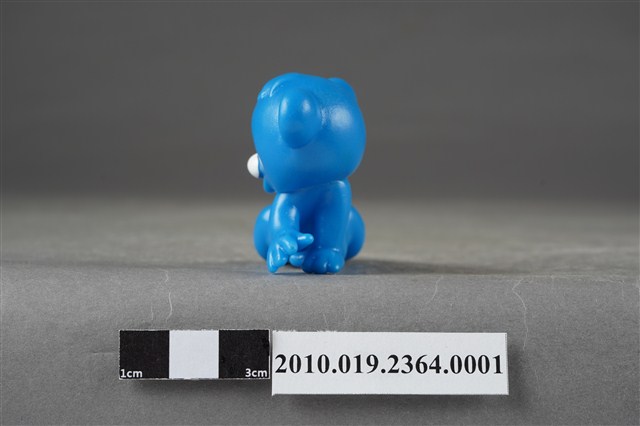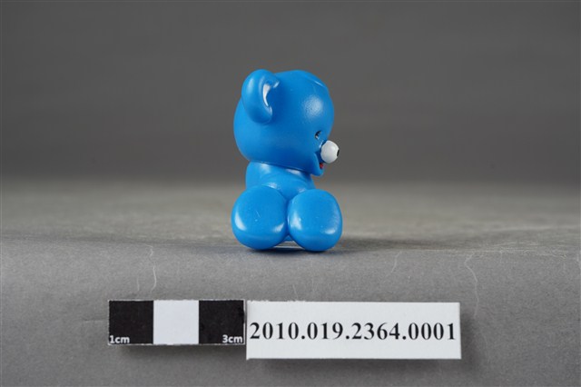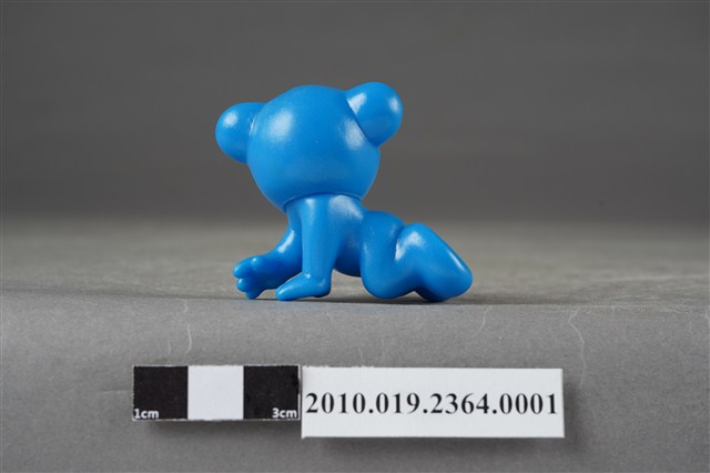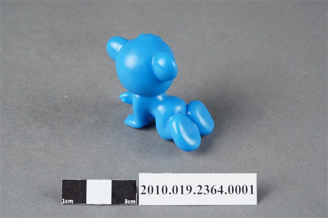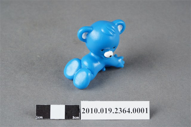 1.本物件為雀巢成長藍熊寶貝造型玩具,材質為塑膠,藍色小熊呈跪姿,頭朝後看,猶如嬰兒爬行姿勢。