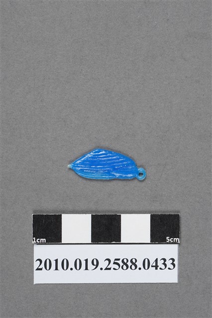 1.本物件為貝造型尪仔仙,為藍色塑膠材質。外型為雙殼貝,貝殼形狀略近三角形,上有放射狀紋路,右側尾端有放射痕。貝殼下方為斧足,斧足左側有一圓環。物件背面的斧足有些微磨痕。本系列尪仔仙多為相同塑膠模版,僅有顏色不同,或是同色同塑膠模版等形式。2.尪仔仙有小、中、大型之分,小型約長2公分,中型約長8-15公分左右,顏色以單色為主。長型則可長達30公分,以佛像、菩薩、神仙和唐三藏等造型為主,塗上金銀紅黃彩漆等亮色。1960、70年代的尪仔仙多以宗教、神話、布袋戲人物為造型。1980年代改以卡通、電玩、漫畫人物造型為主。常見玩法為兩人(或多人)各持一只尪仔仙,輪流用手指彈射,看誰的尪仔仙先疊在對方上面,便可贏得對方用來對戰的尪仔仙。