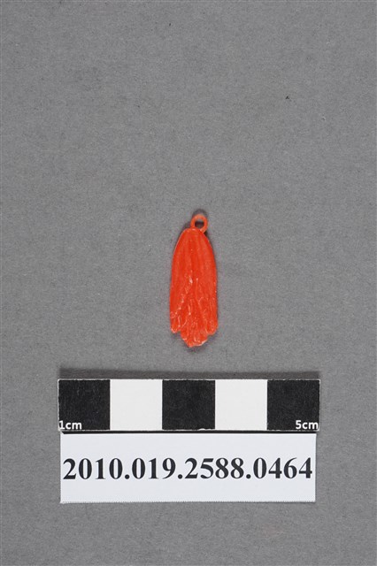 1.本物件為玉米造型尪仔仙,為紅色塑膠材質。外型為玉米,尾端做出玉米尖端數層外皮層層包覆的感覺。背面有數道痕跡,顯示為被外皮完整包覆的玉米。頂端有一圓環。物件正反兩面均有磨損痕跡。本系列尪仔仙多為相同塑膠模版,僅有顏色不同,或是同色同塑膠模版等形式。2.尪仔仙有小、中、大型之分,小型約長2公分,中型約長8-15公分左右,顏色以單色為主。長型則可長達30公分,以佛像、菩薩、神仙和唐三藏等造型為主,塗上金銀紅黃彩漆等亮色。1960、70年代的尪仔仙多以宗教、神話、布袋戲人物為造型。1980年代改以卡通、電玩、漫畫人物造型為主。常見玩法為兩人(或多人)各持一只尪仔仙,輪流用手指彈射,看誰的尪仔仙先疊在對方上面,便可贏得對方用來對戰的尪仔仙。