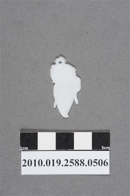 1.本物件為男性頭像造型尪仔仙,為白色塑膠材質。外型為男子頭像,男子五官立體,額頭高聳,蓄有長鬍及鬢角,鬍鬚末端有污損痕跡。頭頂有圓環,圓環邊緣有殘膠。物件背面平滑,無細部結構。依造型判斷,本物件可能為福祿壽三星中的壽星南極仙翁。本系列尪仔仙多為相同塑膠模版,僅有顏色不同,或是同色同塑膠模版等形式。