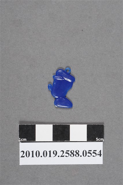 1.本物件為大力水手尪仔仙,為藍色塑膠材質。外型為大力水手,頭上戴海軍帽,帽頂有圓形環。五官表情嚴肅,嘴裡叼著煙斗。頭部下方部分約為肩膀及鎖骨部位,並無做出脖子部位,下方有射出痕。帽子、煙斗及肩膀部位有較明顯之磨痕。物件背面無細部結構,有磨損痕跡。本系列尪仔仙多為相同塑膠模版,僅有顏色不同,或是同色同塑膠模版等形式。
