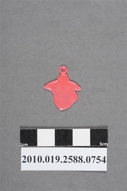 1.本物件為戴帽頭像尪仔仙。硬質塑膠材質,扁平,單一不透明粉紅色,單面浮雕圖案。正面圖案為戴著帽子的頭像,有眼睛、鼻子、嘴巴和耳朵,帽子底下有頭髮。帽頂上有小吊環。2.尪仔仙尺寸大致可分成小、中、大型,小型約長2-5公分,中型約長8-15公分,顏色以單色為主。有些大型的則可長達30公分左右,以菩薩、神仙和民間傳說故事人物等造型為主,塗上金銀紅黃彩漆等亮色。1960、70年代的尪仔仙多以民間傳說故事、歌仔戲、布袋戲人物為造型。1980年代改以卡通、電玩、漫畫人物造型為主。常見玩法之一為兩人(或多人)各持一只尪仔仙,輪流用手指彈射,看誰的尪仔仙先疊在對方上面,便可贏得對方用來對戰或是約定的尪仔仙。