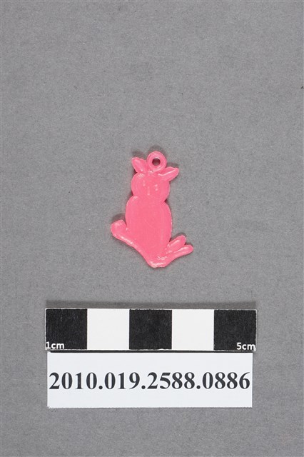1.本物件為貓頭鷹尪仔仙。硬質塑膠材質,扁平,單一不透明粉紅色,單面浮雕圖案。正面圖案為站在樹枝上的貓頭鷹,可見鳥爪抓住樹枝,翅膀收在身旁。頭頂上有小吊環。2.尪仔仙尺寸大致可分成小、中、大型,小型約長2-5公分,中型約長8-15公分,顏色以單色為主。有些大型的則可長達30公分左右,以菩薩、神仙和民間傳說故事人物等造型為主,塗上金銀紅黃彩漆等亮色。1960、70年代的尪仔仙多以民間傳說故事、歌仔戲、布袋戲人物為造型。1980年代改以卡通、電玩、漫畫人物造型為主。常見玩法之一為兩人(或多人)各持一只尪仔仙,輪流用手指彈射,看誰的尪仔仙先疊在對方上面,便可贏得對方用來對戰或是約定的尪仔仙。