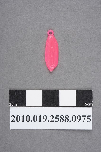1.本物件為蔬菜尪仔仙。硬質塑膠材質,扁平,單一不透明粉紅色,雙面浮雕圖案,兩面圖案相同。圖案為有多層菜葉緊緊包裹在一起,形成圓柱體的半結球蔬菜。有小吊環。2.尪仔仙尺寸大致可分成小、中、大型,小型約長2-5公分,中型約長8-15公分,顏色以單色為主。有些大型的則可長達30公分左右,以菩薩、神仙和民間傳說故事人物等造型為主,塗上金銀紅黃彩漆等亮色。1960、70年代的尪仔仙多以民間傳說故事、歌仔戲、布袋戲人物為造型。1980年代改以卡通、電玩、漫畫人物造型為主。常見玩法之一為兩人(或多人)各持一只尪仔仙,輪流用手指彈射,看誰的尪仔仙先疊在對方上面,便可贏得對方用來對戰或是約定的尪仔仙。