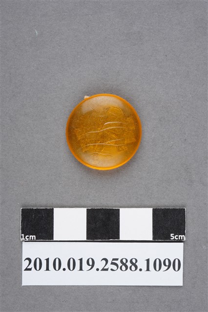 1.本物件為無敵神童尪仔仙。硬質塑膠材質,扁平,單一橙色,單面浮雕圖案。外觀呈圓形,正面圖案為雙手舉起一個大環的古代裝扮人型,站姿,頭上有裝飾物,身穿功夫褲。人型旁邊有無敵神童字樣。2.無敵神童為臺灣國語連續戲劇,由李鵬製作於1986年播出,主角為傳說人物哪吒,內容與西遊記的孫悟空故事相類似,均在描述出生後帶有乾坤環與混天綾,東海龍宮與大鬧八仙等故事。3.尪仔仙尺寸大致可分成小、中、大型,小型約長2-5公分,中型約長8-15公分,顏色以單色為主。有些大型的則可長達30公分左右,以菩薩、神仙和民間傳說故事人物等造型為主,塗上金銀紅黃彩漆等亮色。1960、70年代的尪仔仙多以民間傳說故事、歌仔戲、布袋戲人物為造型。1980年代改以卡通、電玩、漫畫人物造型為主。常見玩法之一為兩人(或多人)各持一只尪仔仙,輪流用手指彈射,看誰的尪仔仙先疊在對方上面,便可贏得對方用來對戰或是約定的尪仔仙。