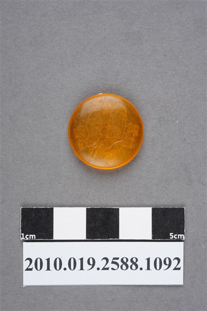1.本物件為無敵神童尪仔仙。硬質塑膠材質,扁平,單一橙色,單面浮雕圖案。外觀呈圓形,正面圖案為背上有2片翅膀或蚌殼的人型,站姿。人型旁邊有無敵神童字樣。2.無敵神童為臺灣國語連續戲劇,由李鵬製作於1986年播出,主角為傳說人物哪吒,內容與西遊記的孫悟空故事相類似,均在描述出生後帶有乾坤環與混天綾,東海龍宮與大鬧八仙等故事。3.尪仔仙尺寸大致可分成小、中、大型,小型約長2-5公分,中型約長8-15公分,顏色以單色為主。有些大型的則可長達30公分左右,以菩薩、神仙和民間傳說故事人物等造型為主,塗上金銀紅黃彩漆等亮色。1960、70年代的尪仔仙多以民間傳說故事、歌仔戲、布袋戲人物為造型。1980年代改以卡通、電玩、漫畫人物造型為主。常見玩法之一為兩人(或多人)各持一只尪仔仙,輪流用手指彈射,看誰的尪仔仙先疊在對方上面,便可贏得對方用來對戰或是約定的尪仔仙。