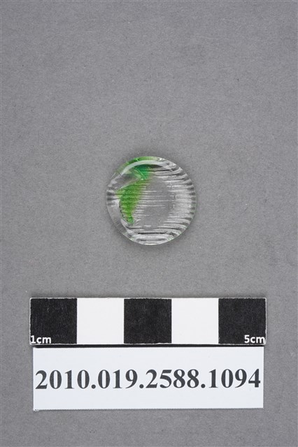 1.本物件為透明圓形尪仔仙。硬質塑膠材質,扁平,透明中帶有綠色,雙面浮雕圖案。外觀呈圓形,沒有特殊圖案,表面有橫條紋路。2.尪仔仙尺寸大致可分成小、中、大型,小型約長2-5公分,中型約長8-15公分,顏色以單色為主。有些大型的則可長達30公分左右,以菩薩、神仙和民間傳說故事人物等造型為主,塗上金銀紅黃彩漆等亮色。1960、70年代的尪仔仙多以民間傳說故事、歌仔戲、布袋戲人物為造型。1980年代改以卡通、電玩、漫畫人物造型為主。常見玩法之一為兩人(或多人)各持一只尪仔仙,輪流用手指彈射,看誰的尪仔仙先疊在對方上面,便可贏得對方用來對戰或是約定的尪仔仙。