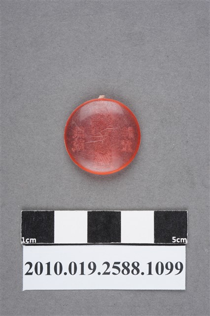 1.本物件為無敵神童尪仔仙。硬質塑膠材質,扁平,單一紅色,單面浮雕圖案。外觀呈圓形,正面圖案為站立的古代裝扮人型,身穿長袍,長袍下擺有斜線圖案。人型旁邊有無敵神童字樣。2.無敵神童為臺灣國語連續戲劇,由李鵬製作於1986年播出,主角為傳說人物哪吒,內容與西遊記的孫悟空故事相類似,均在描述出生後帶有乾坤環與混天綾,東海龍宮與大鬧八仙等故事。3.尪仔仙尺寸大致可分成小、中、大型,小型約長2-5公分,中型約長8-15公分,顏色以單色為主。有些大型的則可長達30公分左右,以菩薩、神仙和民間傳說故事人物等造型為主,塗上金銀紅黃彩漆等亮色。1960、70年代的尪仔仙多以民間傳說故事、歌仔戲、布袋戲人物為造型。1980年代改以卡通、電玩、漫畫人物造型為主。常見玩法之一為兩人(或多人)各持一只尪仔仙,輪流用手指彈射,看誰的尪仔仙先疊在對方上面,便可贏得對方用來對戰或是約定的尪仔仙。