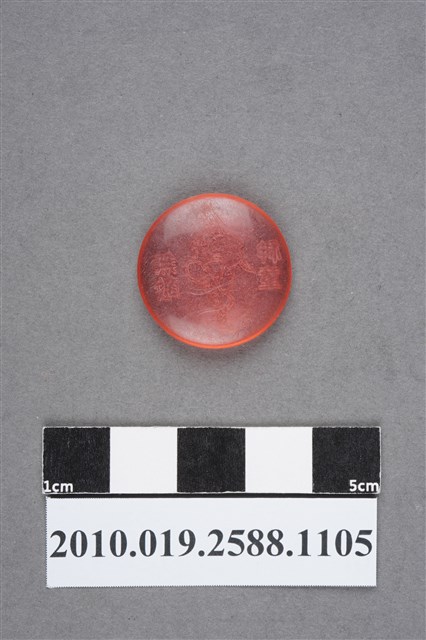 1.本物件為無敵神童尪仔仙。硬質塑膠材質,扁平,單一紅色,單面浮雕圖案。外觀呈圓形,正面圖案為站立的古代裝扮人型,頭上戴有裝飾物,左腳抬起,以右腳站立。人型旁邊有無敵神童字樣。2.無敵神童為臺灣國語連續戲劇,由李鵬製作於1986年播出,主角為傳說人物哪吒,內容與西遊記的孫悟空故事相類似,均在描述出生後帶有乾坤環與混天綾,東海龍宮與大鬧八仙等故事。3.尪仔仙尺寸大致可分成小、中、大型,小型約長2-5公分,中型約長8-15公分,顏色以單色為主。有些大型的則可長達30公分左右,以菩薩、神仙和民間傳說故事人物等造型為主,塗上金銀紅黃彩漆等亮色。1960、70年代的尪仔仙多以民間傳說故事、歌仔戲、布袋戲人物為造型。1980年代改以卡通、電玩、漫畫人物造型為主。常見玩法之一為兩人(或多人)各持一只尪仔仙,輪流用手指彈射,看誰的尪仔仙先疊在對方上面,便可贏得對方用來對戰或是約定的尪仔仙。