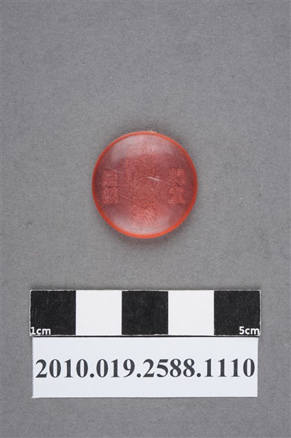1.本物件為無敵神童尪仔仙。硬質塑膠材質,扁平,單一紅色,單面浮雕圖案。外觀呈圓形,正面圖案為站立的古代裝扮人型,身穿長袍,長袍下擺有斜線圖案。人型旁邊有無敵神童字樣。2.無敵神童為臺灣國語連續戲劇,由李鵬製作於1986年播出,主角為傳說人物哪吒,內容與西遊記的孫悟空故事相類似,均在描述出生後帶有乾坤環與混天綾,東海龍宮與大鬧八仙等故事。3.尪仔仙尺寸大致可分成小、中、大型,小型約長2-5公分,中型約長8-15公分,顏色以單色為主。有些大型的則可長達30公分左右,以菩薩、神仙和民間傳說故事人物等造型為主,塗上金銀紅黃彩漆等亮色。1960、70年代的尪仔仙多以民間傳說故事、歌仔戲、布袋戲人物為造型。1980年代改以卡通、電玩、漫畫人物造型為主。常見玩法之一為兩人(或多人)各持一只尪仔仙,輪流用手指彈射,看誰的尪仔仙先疊在對方上面,便可贏得對方用來對戰或是約定的尪仔仙。