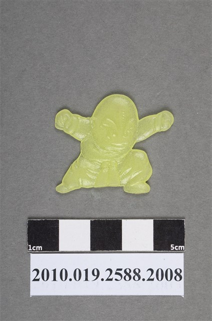 1.本物件為漫畫七龍珠之克林尪仔仙。硬質塑膠材質,扁平,單一黃色,雙面浮雕圖案,兩面圖案相同。圖案為呈戰鬥姿勢的克林,其頭上有6道戒疤,眉毛粗,表情嚴肅,腰間綁帶垂下,身體略微彎腰向前傾,雙手握拳往左右平伸,一腳往後延伸,一腳往前屈膝。