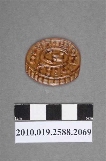 1.本物件為瓶蓋尪仔仙。硬質塑膠材質,扁平,單一橙色,雙面浮雕圖案,兩面圖案相同。圖案為圓型瓶蓋,瓶蓋外圈有「KINOKO」字樣圍成的圈,圈中有1朵似香菇形狀的圖案。