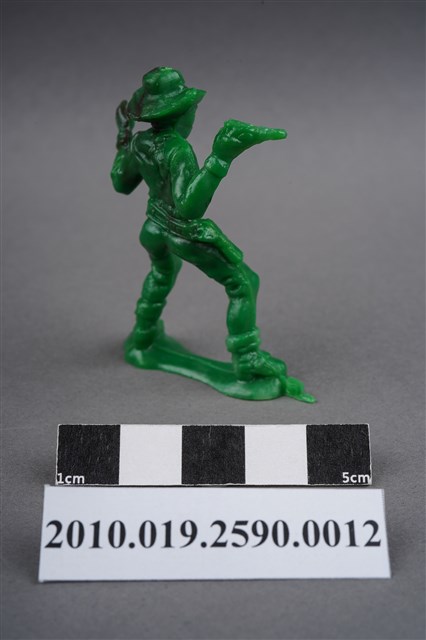 2.1938年美國玩具公司Bergen Toy and Novelty Co.開始銷售廉價的塑膠微型單色士兵系列,高約2英寸,各有不同的作戰姿勢及工具武器,美軍部分參照美軍部隊使用了軍綠色,之後推出灰色的德軍部隊及黃色的日軍部隊。1950年代因塑膠製造業的蓬勃發展,以及鉛中毒的恐慌,使得塑膠製且價格低廉的玩具士兵取代昂貴的彩繪金屬士兵,並定型為目前廣為人知的二戰系列。除了士兵系列外,市面上亦能見到牛仔與印地安人、太空人、騎士、恐龍、消防員、警察等各種角色。