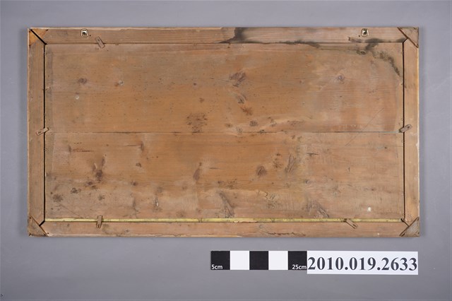 2.玻璃畫又稱為玻璃彩繪,屬於民間的平面藝術,使用毛筆沾油漆在平板玻璃背面作畫。臺灣的玻璃彩繪約始於日治時期,光復後受到工業化量產的影響開始流行於一般階層,約於民國40、50年代達到鼎盛時期。玻璃畫的題材多帶有吉祥意味,常用來作為祝壽、婚慶、新居落成、商店開張等誌喜之賀禮。