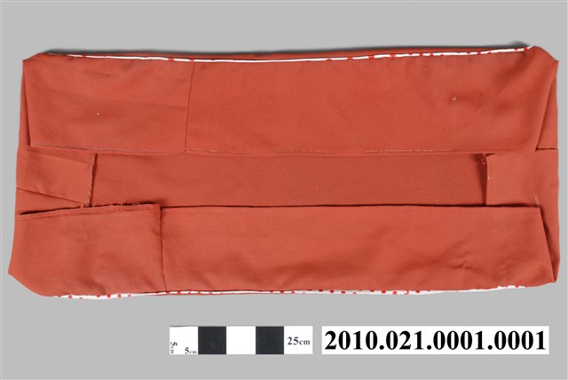 本文物為曉(原文:AKATUKI)牌腳踏式裁縫機布套,其蓋住裁縫機的金屬機體。1790年英國人湯瑪斯‧聖特(Thomas Saint)為提高製鞋效率設計手搖裁縫機,在多次的改良之下,時至1853年多數家庭使用之腳踏裁縫機才出現。而傳統家庭中的縫紉工作多由女性擔任,因此縫紉機出現反映女性生活與科技互動,所產生工作型態之改變。