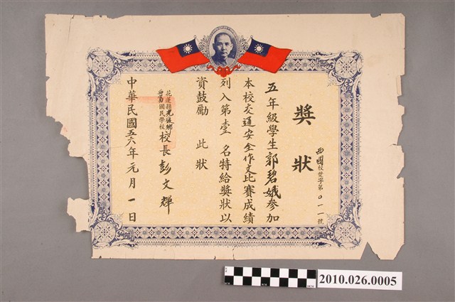 2010.026.0005 郭碧娥花蓮縣西富國民學校作文比賽獎狀