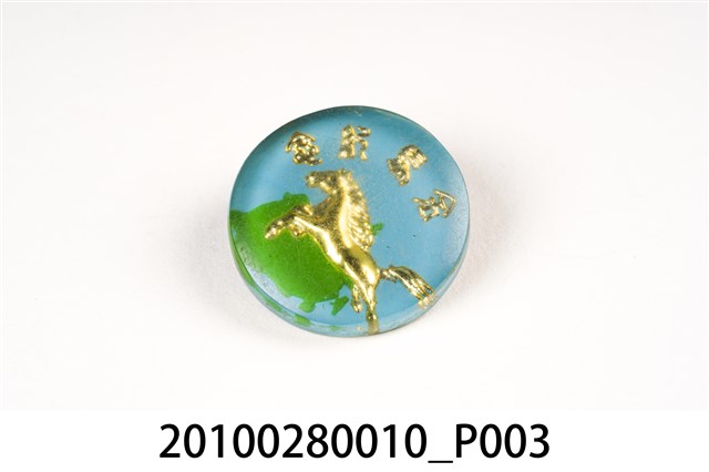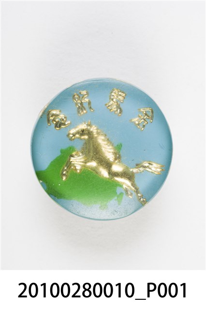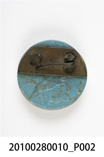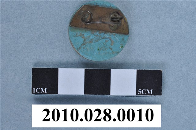 此物件為紀念章,形式為圓形胸針,以燙金圖樣呈現金馬地圖。 此物件為金門、馬祖在臺灣戒嚴時期的徽章。自1950年國民黨政府從中國大陸撤退來臺灣後,由於國共雙方爆發古寧頭戰役、九三砲戰等一系列衝突,因而在1956年6月23日國防部頒布「金門馬祖地區戰地政務實驗辦法」,並成立「金門與馬祖防衛司令部政務委員會」,實施軍政一元化、軍政一體的「戰地政務體制」。此項制度使金門與連江縣政府受各區政務委員會指揮監督,此委員會則隸屬國防部之下,而縣長則由國防部指定派任。另金門、馬祖實施的戰地政務主要工作為「建立三民主義模範縣」,實際項目為強化愛國與反共意識、建立戰地警衛組織體制、健全戰地物資供應、完善醫療制度、實施宵禁、燈火管制、軍法審判、入出境管制、電信管制、金融管制與電器管制等措施。後在1987年臺灣地區解嚴、1991年5月1日動員戡亂時期終止,但金馬地區持續到1992年11月7日才終止戒嚴與戰地政務。