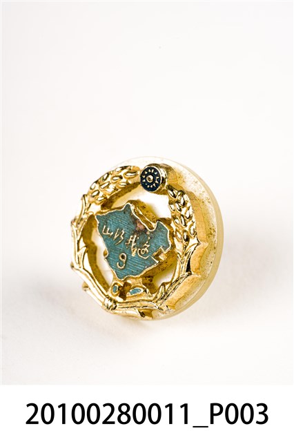 此物件為紀念章,形式為圓形胸針,在中國地圖上置有「還我河山」字樣。 本物件的持有人為劉樹森(1913-2008),為臺南市的第六屆議員,他出生於河南省信陽縣,畢業於河南開封甲等工專,後投筆從戎加入軍隊,並先後擔任陸軍少將師長、河南省信陽縣長暨成防司令,另也曾擔任團主任支隊司令、團主任團長、代理縣長。劉樹森來臺後定居於臺南,並擔任國民黨臺南市黨部第二組長,女兒為曾經擔任成功大學外文系主任的劉開鈴。 此紀念章提到之「還我河山」一詞,被認為為中國宋朝名將岳飛所題之詞,但中國著名的文字學家張政烺以及朱瑞熙先後表明,此詞為民國文人周承忠、童世亨從岳飛等人的作品中擷取「還我河山」四個字集成此詞,並在日本發起侵占中國東北的「九一八事件」後,於民間發表,藉以激發中國人民,因此此「還我河山」一詞與「抗日」有密切關聯,而這一詞由中華民國政府從中國帶到臺灣後,則在金門及屏東等地的地方景點中出現,產生「反攻大陸」的意義。